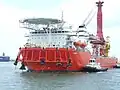 A crane vessel, crane ship, crane barge, or floating crane is a ship with a crane specialized in lifting heavy loads, typically exceeding 1,500 t (1,476 long tons; 1,653 short tons) for modern ships. The largest crane vessels are used for offshore construction.[1]
