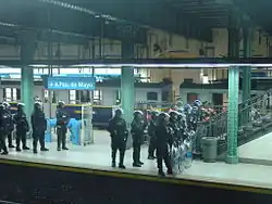 Argentine Federal Police at a train station in the Buenos Aires Underground