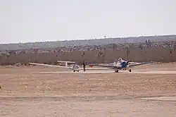 A Piper PA-25 Pawnee prepares to tow a Grob 103 Twin Astir at Crystal Airport.