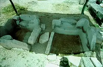 Very few archaeological remains were found in excavation from the first stage (800-600 BC).[2]