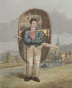 Boy with coracle, by George Orleans Delamotte from the art collection of the National Library of Wales