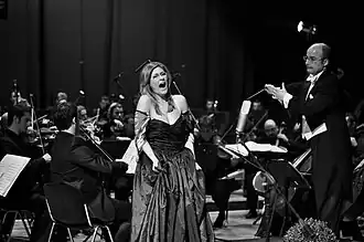 Merita Juniku was born in 1960 in Pristina and attended the music school there to continue later with her studies at the faculty of music. After a growing interest in opera she continued her studies at the Academy of music in Zagreb and graduated in 1990. Her first performance was "Troubadours" by Verdi. Some examples of the operas she has sung are: "Norma" by Bellini, "Aida" by Verdi, Die Walküre by Richard Wagner, Nabucco by Giuseppe Verdi, Un ballo in Maschera by Giuseppe Verdi, Der Zigeunerbaron by Johann Strauss II, Samson and Delilah by Saint-Saëns etc. As of 2006 she is teaching at the University of Pristina and is a permanent member of the Opera of Ljubljana.[30]