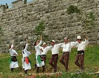 The National Song and Dance Ensemble "Shota" was established in 1948 as one of the first artistic and cultural institutions in Kosovo. For fifteen years this ensemble has operated as a society and afterwards as a semi-professional ensemble. While in March 1964 by decision of the Assembly of Kosovo, "Shota" gained the status of professional ensemble as well as three other ensembles in Yugoslavia, "Llado" – Zagreb, "Kollo" – Belgrade and "Tanec" – Skopje. For the past fifty years, the Ensemble "Shota" has played a crucial role in the preservation, cultivation and development of the Albanian song and dance as well as bringing genuine national cultural values such as authenticity of costumes, authentic melodies and exotic unique dances with which this ensemble is presented in more than 50 countries around the world and in all the continents.[43]