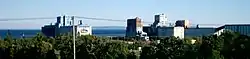 Along the shores of Lake Superior to the south and east of the neighbourhood is an abundance of industries. Separated from the main neighbourhood by Hodder Avenue and the Canadian Pacific Railway and Canadian National Railway mainlines is the Port Arthur Shipbuilding Company (PASCO) drydock and shipyard, which has been operating since 1909,[2] and the Thunder Bay Fine Papers mill, formerly Cascades. Further east is the abandoned Smurfit-Stone factory, and the Bare Point water treatment plant which is the main source of drinking water in Thunder Bay. Grain elevators located south of the Current River dominate the view toward the lake.