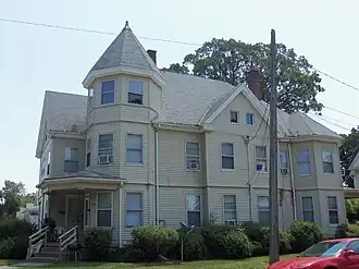The Currier House is a historic building located on the eastside of Davenport, Iowa, United States. At the very beginning of the 20th century, Frederick W. Currier may have had this house built and lived here for a short time when he worked for the Pittsburgh Plate Glass Company. It was later occupied by George M. Watts, who was the manager for the Standard Oil Company. This large, three-story house follows a rambling plan, typical of the Queen Anne style in which it was constructed. It features a corner tower with a conical roof, a full height polygonal bay and gabled pavilions with short cornice returns.[2] The residence was listed on the National Register of Historic Places in 1983.[1]