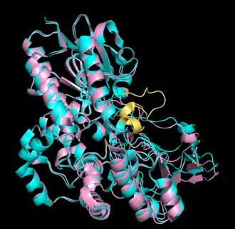 - ^ a b c d e f g Mirza, I. Ahmad; Yachnin, Brahm J.; Wang, Shaozhao; Grosse, Stephan; Bergeron, Hélène; Imura, Akihiro; Iwaki, Hiroaki; Hasegawa, Yoshie; Lau, Peter C. K.; Berghuis, Albert M. (2009-07-01). "Crystal Structures of Cyclohexanone Monooxygenase Reveal Complex Domain Movements and a Sliding Cofactor". Journal of the American Chemical Society. 131 (25): 8848–8854. Bibcode:2009JAChS.131.8848M. doi:10.1021/ja9010578. ISSN 0002-7863. PMID 19385644. S2CID 207138937.