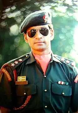 After graduating from the National Defence Academy in 1988, Pillay was commissioned into the 4th battalion of the Brigade of the Guards (4 Guards). He saw active service in the Indian states of Punjab and Jammu and Kashmir before moving to the 8th battalion of the Brigade of the Guards (8 Guards) deployed in India's northeast, where he was involved in an encounter in which he nearly lost his life with multiple gunshots directed on his chest and arm and a grenade blast that exploded on his right foot and blew up a portion of the leg.[9][10]
