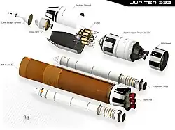 According to the proposal, the single-stage Jupiter-120 could achieve low Earth orbit with two standard ablative RS-68 engines, while an extra RS-68 was required on the core stage of the heavier two-stage Jupiter-232. The Earth Departure Stage for Jupiter-232 now required two standard J-2X engines instead of one.[16]