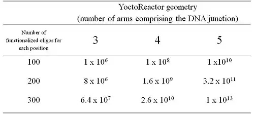 Table 1. YoctoReactor library size. yR library size is a function of the number of different functionalized oligos used in each position and the number of positions in the DNA junction