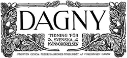 Dagny was a women's magazine published from 1886 to 1913 in Stockholm, Sweden. The title of the magazine bore the statement Utgifvet af Fredrika-Bremer Förbundet (Swedish: published by the Fredrika Bremer Association), indicating its publisher.[1] It was subtitled as Tidskrift för sociala och litterära intressen (Swedish: Journal for social and literary interests).[2] It is the first Swedish magazine which covered social issues from women's perspective and assumed a leading position in the suffrage movement in Sweden from 1903.[3]