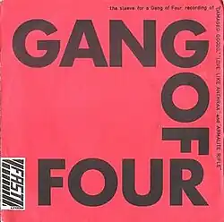 "Damaged Goods" is a song by English post-punk band Gang of Four. Acting as their debut single, it was released on 13 October 1978 through independent record label Fast Product.[2] Produced by Fast Product owner Bob Last under the alias "Fast Product", the single received critical acclaim, prompting the band to sign to major label EMI. The title track and "Love Like Anthrax" were re-recorded for Gang of Four's debut album Entertainment! in 1979 and the whole EP was included in the Fast Product compilation Mutant Pop in 1980.[3][4]