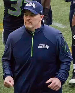 Daniel Patrick Quinn (born September 11, 1970) is an American professional football coach who is the head coach for the Washington Commanders of the National Football League (NFL). He came to prominence as the defensive coordinator of the Seattle Seahawks from 2013 to 2014, coaching a defense later known as the Seattle Cover 3 that featured the Legion of Boom secondary. In both years under Quinn, Seattle's defense lead the NFL in total defense and made consecutive Super Bowl appearances, winning the franchise's first in Super Bowl XLVIII.