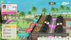 The game's core gameplay and loop has been criticized by reviewers for being repetitive, as well as how grinding quickly becomes necessary for players to progress.[31][33] Stuart Gipp of Nintendo Life described the game as a "total grindfest", commenting that the gameplay of the Development mode hardly changes with new playthroughs, ultimately concluding that the game repeats itself too much.[6] Alana Hagues, writing for RPGFan, criticized the game for being luck-based, using getting the correct cards or landing on the more beneficial squares as examples.[7] In a review for Anime News Network, Lauren Orsini expressed how she had hoped for more unique content within the game, but still generally enjoyed how the game could be played for a long time before completion.[34]