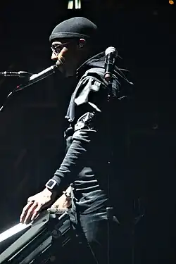The album featured Jackson rapping for the first time.[12] The inclusion of Wreckx-n-Effect and hip-hop rhythms were attempts to introduce Jackson to a younger generation of urban listeners.[41] Riley was a pioneer of new jack swing, and he was hired by Jackson specifically for his work in the genre.[42][43] Riley co-produced half the songs on the album. Swedien said of Riley, "He'd come in with a groove, we'd say it wasn't exactly right, and there would be no complaining. He'd just go back and then come back in and blow us away with something like 'Dangerous'."[10] In recordings with Bottrell, the sounds were more diverse (e.g. "Black or White" and "Give In to Me"). The rap in "Black or White" was written and performed by Bottrell, credited under the pseudonym "L.T.B." Jackson hummed melodies and grooves before leaving the studio, while Bottrell developed on these ideas with drum machines and samplers, including an Akai S1000.[12] Bottrell operated a Neve console and two 24-track Studer analog tape machines to draft ideas and demos. He then used a 32-track Mitsubishi machine to assemble the album.[12]