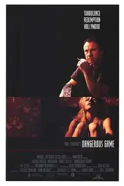Dangerous Game (also known as Snake Eyes) is a 1993 drama film directed by Abel Ferrara, written by Nicholas St. John, and starring Madonna, Harvey Keitel, and James Russo. The story follows a New York-based filmmaker directing a Hollywood drama about the volatile relationship between a married couple, while simultaneously straining his relationship with his own wife and causing the lines between reality and the film's production to blur.