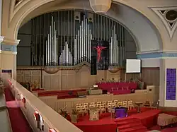 In 2009, Mark Andersen was appointed as Artist in Residence, and asked to provide a free noontime concert music series, with performances each month in the sanctuary.[10] More than 57 noontime concerts were presented over 6 years, and many other evening concerts and events were also booked in the Hall. Many of these concerts were filmed and aired on the local television show Crescendo! by International Artists Records. The television program originally aired on SCANTV, and later on Seattle Community Media (SCM) at North Seattle College. Crescendo! also has aired across the country on Time Warner Cable. These concerts continued until December 2014, when preparation for reconstruction of the Recital Hall in 2015 began.[11] The final concert before reconstruction was held December 16, 2014.