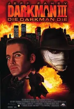 Darkman III: Die Darkman Die is a 1996 Canadian-American superhero film directed by Bradford May, starring Arnold Vosloo, Jeff Fahey, Darlanne Fluegel and Roxann Dawson. It is the sequel to 1995's Darkman II: The Return of Durant, whose director Sam Raimi serves as executive producer.[1] Vosloo once again stars as Darkman, who stands against power-hungry entrepreneur Peter Rooker (Fahey), and forges a strange emotional bond with his enemy's neglected wife and daughter.[2]