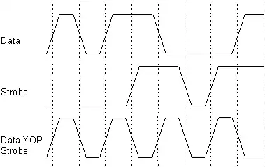 There is an equivalent way to specify the relationship between Data and Strobe. For even-numbered Data bits, Strobe is the opposite of Data. For odd-numbered Data bits, Strobe is the same as Data. From this definition it is more obvious that the XOR of Data and Strobe will yield a clock signal. Also, it specifies the simplest means of generating the Strobe signal for a given Data stream.