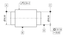 Screenshot from AutoCAD with various geometric dimensioning and tolerancing datum reference symbols (total indicator reading, perpendicularity, and parallelism