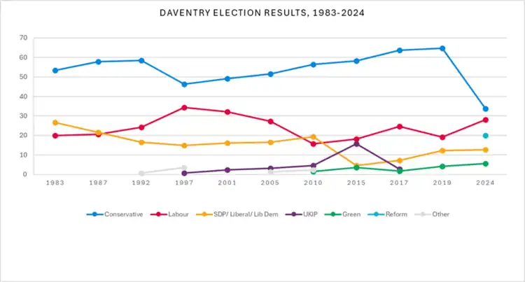The constituency covers the west of Northamptonshire and is named for the market town of Daventry.