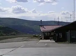 Dawson City Airport (IATA: YDA, ICAO: CYDA) is located 8 nautical miles (15 km; 9.2 mi) east of Dawson City, Yukon, Canada, in the Klondike River valley, and is operated by the Yukon government. It has a terminal building and a runway which was paved in May 2019.[4] The asphalt runway is 5,003 ft × 100 ft (1,525 m × 30 m) long and at an elevation of 1,215 ft (370 m). A number of studies have recommended moving the airport or realigning the runway as it is in a narrow mountain valley.