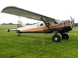 The de Havilland Canada DHC-2 Beaver is a single-engined high-wing propeller-driven STOL aircraft, principally operated as a bush plane and other utility roles, such as cargo and passenger hauling, aerial application (crop dusting and aerial topdressing), and general civil aviation purposes; aviation publication Plane & Pilot described the type as being "arguably the best bush plane ever built".[6] The Beaver was designed to operate in all seasons and the majority of weather conditions; a large proportion were also equipped with floats for buoyancy in water; it reportedly possesses favourable performance characteristics for a floatplane. As a result of its favourable characteristics as a hard working and productive aircraft, the Beaver has had a lengthy service life and many examples have been remanufactured or have otherwise received life extension modifications.[6]