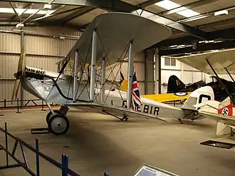 The third aircraft (registered G-EBIR and named Miss Kenya; built in 1925) remains airworthy with the Shuttleworth Collection, Old Warden, England and can be seen at flying events throughout the summer months. It is still powered by an Airdisco (Renault) 120hp V-8 engine driving a fixed pitch 4-bladed wooden propeller.