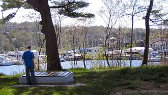 In the late 1960s the land was annexed to the city of Halifax, but a proposed high-rise apartment met with protest from the Northwest Arm Community Planning Association.[15] Though a counterproposal to rezone the site as parkland was rejected, development on Deadman's Island itself did not proceed.[16] However, by the 1990s the land was "effectively the last piece of undeveloped waterfront land on the Northwest Arm."[16] Condominium units were proposed in 1998, and were again met with protest from community associations.[17] The Northwest Arm Heritage Association began a project to catalogue the prisoners buried on the site and was joined in their efforts by related societies throughout the Maritimes and New England, culminating in a request that the municipality recognize Deadman's Island as a heritage property.[18] The issue was broadcast internationally, receiving mention in The Globe and Mail, The New York Times and the Boston Globe, among others.[18] The city hired historian Brian Cuthbertson to evaluate the heritage claim, and his report concluded that the site could hold as many as 400 bodies (in contrast with the 35 suggested by the developer's preliminary survey).[18] The city also saw the site as a potential attraction for American tourists, much like the nearby memorials to victims of the Titanic disaster.[18]