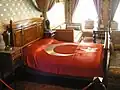 Atatürk's body was put in a zinc-lined mahogany casket of walnut wood. The flag-draped casket was placed on November 16[4] in the reception hall of the palace on a catafalque. It was flanked by three high torches at each side symbolizing the six pillars of Kemalist ideology and crowned by wreaths for lying in state.[2][5]