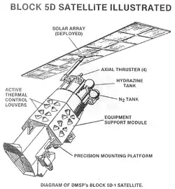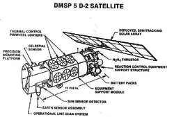 ![]() Artist rendition of a DMSP-5D2 satellite in orbit | |