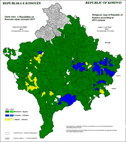 The 2011 Kosovo population census was largely boycotted by the Kosovo Serbs, especially in North Kosovo. That left the Serb population underrepresented.[42] The International Monitoring Operation said that questions complied with international standards: respondents can declare their ethnicity and religion but are not obliged to do so.[43] Serbs predominantly identify as Orthodox Christians.[44] The results of the 2011 census gave the following religious affiliations for the population included in it:[45]