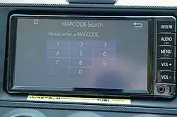Car navigation menu with MapCode option