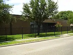 Zoned elementary schools serving sections of the neighborhood include Charles Eliot Elementary School, Raul C. Martínez Elementary School, Pugh Elementary School, and Scroggins Elementary School.[18] Pugh Elementary is in the Denver Annex area Block 6. Eliot Elementary is in Harbor Homesite.[19] Scroggins Elementary School is in Houston Harbor Block 37 and Houston Harbor Annex Block 10.[20] R. Martínez Elementary is in Houston Harbor blocks 77, 81, and 85.[21] All areas in Denver Harbor are zoned to McReynolds Middle School and Wheatley High School.[1][22][23] McReynolds is in Denver Addition Blocks 10-11, 14-15, and 34-35.[24] Wheatley is outside of Denver Harbor, in the Fifth Ward.[5]