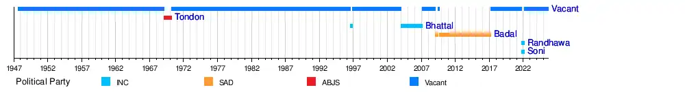 | Balram Das Tandon | 12 February 1997 | 26 February 2002 | Bhartiya Janata Party | Prakash Singh Badal | 11th | |