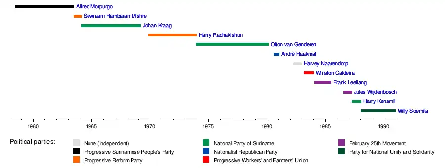11. ^ "AROUND THE WORLD; New Civilian Cabinet Installed in Suriname". The New York Times. 1 April 1982. Retrieved 15 December 2020.