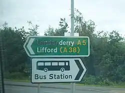 A visible sign of the dispute to the visitor is in the road signs;[108] those pointing to the city from the Republic refer to it as Derry (and in Irish, Doire), whilst signs in Northern Ireland use Londonderry. It is not uncommon to see vandalised road signs—the "London" part of the name spray painted over on "Londonderry" road signs by nationalists,[108] or occasionally "London" added to "Derry" signs by unionists.[108] Some sign-posts are even occasionally vandalised in such a way that "London" is replaced with the word "Free" (see Free Derry).[108]