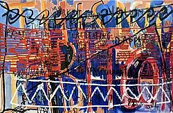 Despina Stokou (born 1978 in Athens, Greece) is a contemporary artist, writer and curator based in Los Angeles, California. She primarily produces gestural, expressive paintings, often large and displaying vivid color, that include layered collage elements like cut paper letters spelling out pointed phrases and topical passages that tumble and pile up across her canvases.[1]