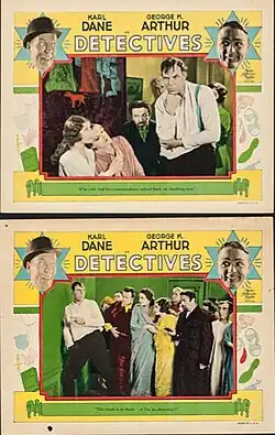 Detectives is a 1928 silent film comedy produced and distributed by Metro-Goldwyn-Mayer. It was directed by Chester Franklin with elements of the old-house melodrama genre. The film is another outing for Karl Dane, George K. Arthur and Marceline Day. Clips of the film appeared in Robert Youngson's MGM's Big Parade of Comedy in 1965. One scene has George K. Arthur disappearing while within the hanging covers of a large canopy bed.[1][2][3]