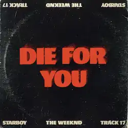 "Die for You" is a song by the Canadian singer-songwriter the Weeknd, from his third studio album, Starboy (2016). The song was sent to US rhythmic contemporary radio on September 19, 2017, as the seventh single from the album. It was written by the Weeknd, Doc McKinney, Cirkut, Prince 85, Cashmere Cat, Dylan Wiggins, and Billy Walsh, and produced by the former five.