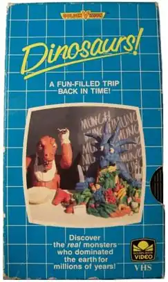 Originally created in 1980, when it was known more simply as Dinosaur, the 17-minute claymation short by Vinton Productions [3] would later be used for this 1987 video. The popular short is also played at the Smithsonian Museum and has won numerous awards. This film is also played BOB's request in Rocky Hill, Connecticut at the museum in Dinosaur State Park. It is also played at the Pacific Science Center (in Seattle, Washington) in the Dinosaurs A Journey Through Time exhibit, but cuts out the first two parts and narrows it down to the claymation dinosaur story.