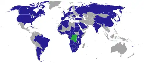 - ^ a b c d e f g h i j k l m n o p q r s t u v w x y z aa ab ac ad ae af ag ah ai aj ak al am an ao ap aq ar as at au av aw ax ay az ba bb bc "Congo around the world". Embassy of the D.R. Congo in Washington, D.C., United States. Retrieved 3 July 2025.