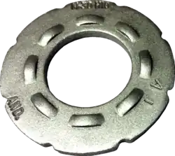 DTIs within the RCSC specification section 8.2.4 are described thus: "ASTM F959 direct tension indicators are recognized in this Specification as a bolt-tension-indicating device. Direct tension indicators are hardened washer shaped devices incorporating small arch-like protrusions on the bearing surface that are designed to deform in a controlled manner when subjected to compressive load."[4]
