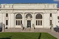 This district is home to various cultural and educational institutions. The Columbus Metropolitan Library, one of the highest-ranking large-city libraries in the nation, is an example of this. Its main branch location is within the bounds of the Discovery District, and is currently under construction and closed to the public.[6] The Columbus Museum of Art is another example and is home to a wide array of American and European Art, as well as many contemporary and photographic collections.