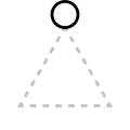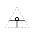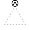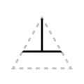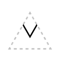 The apex of the triangle or chevron corresponds to vowel height or frontedness, with high vowels /i/ and /u/ pointing upwards and the low vowel /a/ pointing downwards. Likewise, the front vowels /ɛ/ and /e/ point leftwards and the back vowels /ɔ/ and /o/ point rightwards.