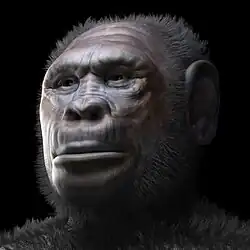 In addition to the skulls, about a hundred postcranial remains have been discovered.[4] The first postcranial fossil discovered was a third metatarsal bone, recovered in 1997.[17] Postcranial fossils comprise bones from all parts of the body and include parts of the arms,[18] legs,[19] axial skeleton (vertebrae and ribs)[19] and feet.[20] The bones, some of them confidently associated with Skull 3, are from both adolescent and adult individuals.[18]