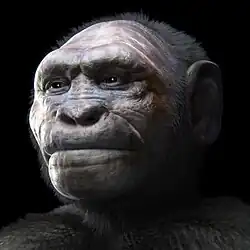 The D2600 mandible was also described in 2002 by Gabunia, Vekua and Lordkipanidze, together with French archaeologists and palaeoanthropologists Henry and Marie-Antionette de Lumley.[21] The mandible differed in its large size, morphological features and teeth proportions not only from the previously discovered jaw at Dmanisi but also from all other hominin jaws found to date, blending primitive features otherwise seen in Australopithecus and early Homo with derived features otherwise seen in H. erectus.[16] They considered it sufficient grounds for the creation of a new species, which they dubbed Homo georgicus.[21] They assigned all the Dmanisi hominins to the new species, and believed the significant disparity in robustness was caused by marked sexual dimorphism. Gabunia and colleagues interpreted H. georgicus as a descendant of H. habilis or H. rudolfensis and an early species "near the roots of the Homo branch...foretelling the emergence of Homo ergaster".[41] Palaeoanthropologist Sang-Hee Lee supported the classification of all the Dmanisi hominin fossils as belonging to the same species (though made no comment on if that species should be H. erectus or H. georgicus) in 2005, noting that despite the differences in brain capacity between the skulls, they were not more morphologically distinct from each other than individuals of different sexes in modern great apes.[42]