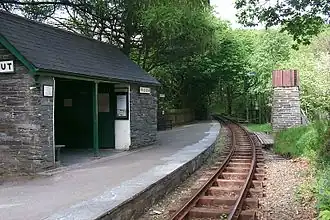 Dolgoch railway station (also known as Dol-goch railway station, Dol-gôch railway station, or Dolgoch Falls railway station) is a station on the Talyllyn Railway between Tywyn and Abergynolwyn, Gwynedd in north-Wales. It is 4 miles 72 chains (4.90 miles, 7.89 km) from Tywyn Wharf. Unlike most places on the line, the station was built for tourist traffic, for visitors to the local Dolgoch Falls.[1]