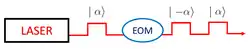 The Dolinar receiver also makes use of an adaptive displacement mechanism, one that can quickly change from either or . If using interference from a reference state at a beam splitter to achieve the displacement, the reference state must change between and . An EOM can be used to change the phase of the reference state by as needed.
