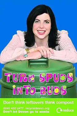 Various celebrities, including Phillipa Forrester, Rik Mayall and the late Keith Floyd, have publicly supported the campaign, with both Mayall and Floyd appearing in television adverts. Most recent was the involvement of Location, Location, Location presenter Kirstie Allsopp, who became the face of the composting campaign in 2009.[3]