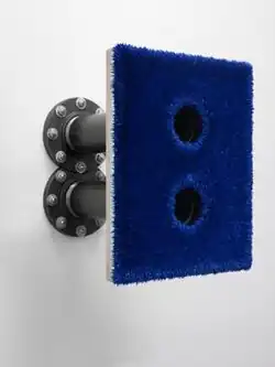 Lot 122811 (the double extension), oil on linen with wood panel support, w/cast iron flanges, common black pipe, hardware (21 x 17 x 21 inches)